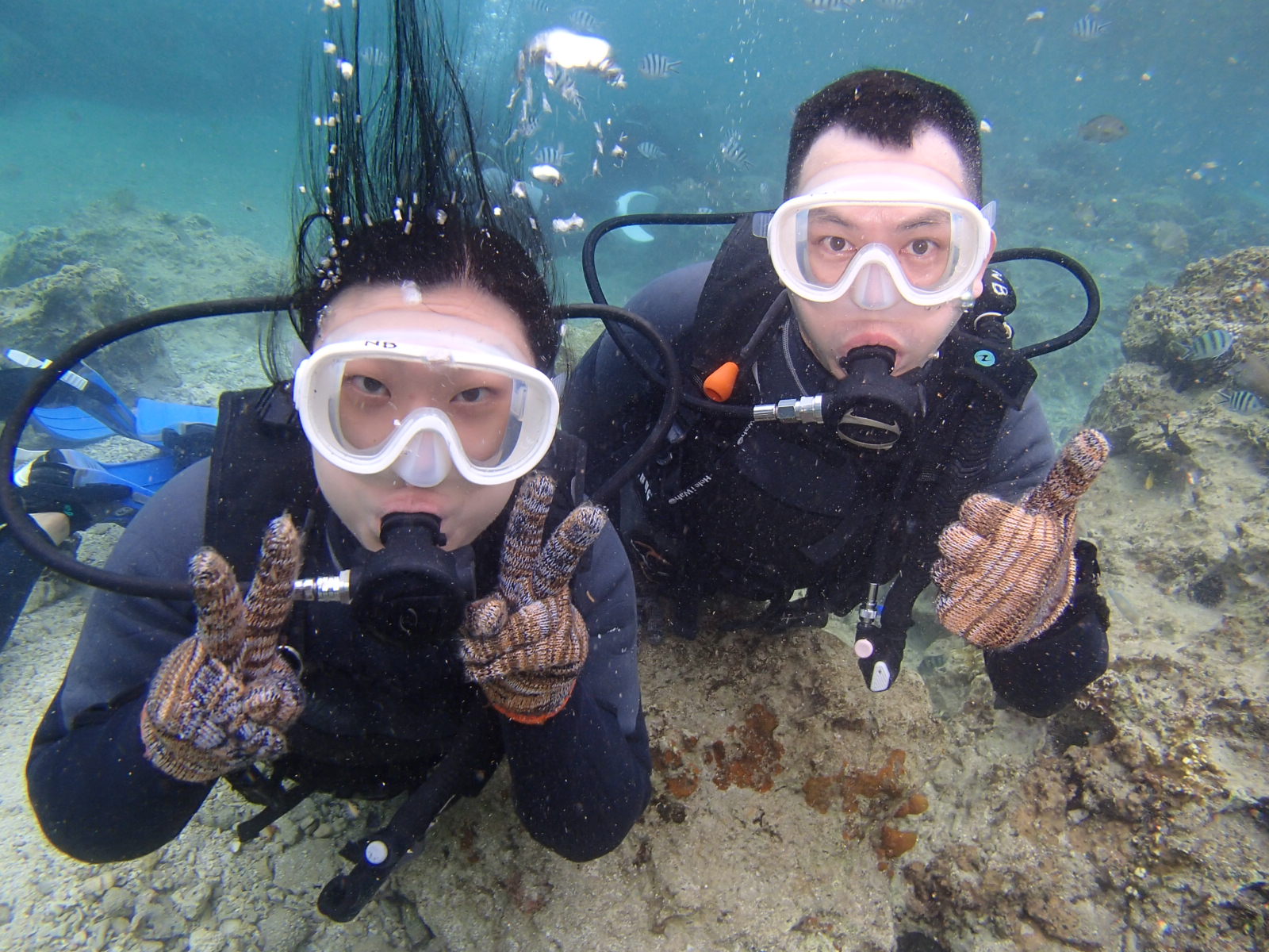 Glad hear you had good time and saw many many beautiful fish!! Lots of tropical fish! It was really amazing underwater world!! Next time we go to blue cave diving and come to get license!! It will be much more fun!