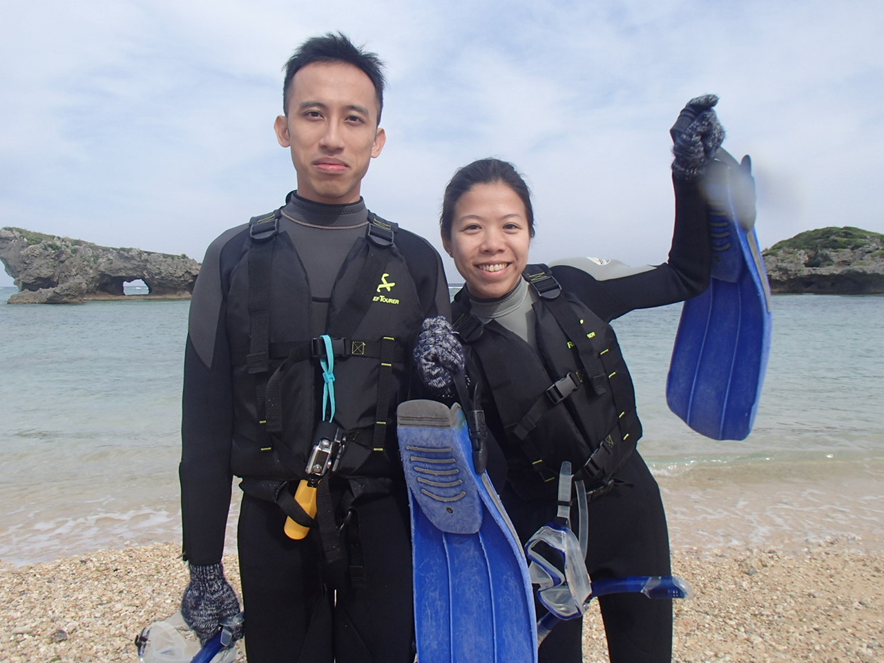 日本中!世界中から今日も楽しい笑顔が集まりました~!今日もたくさんのお客様が沖縄の海に感動!みんなの笑顔でますます神秘的になりましたね!みなさんうれしそうな顔を見せて頂けて良かったです!世界に通じるキレイな海!やっぱり海の生き物は楽しいですね~!キレイな海の色にみんなびっくりでしたね!楽しい楽しいと言って頂きまして嬉しい限りです!また来てくださいね^^ glad hear you had good time and saw many many beautiful fish!! lots of tropical fish! it was really amazing under water world!! next time we go to blue cave diving and and come to get license!! it will be much more fun!