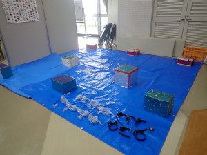 海の中を想定して、マスクをつけて、コンパスを使いながら宝探しゲームをしました。