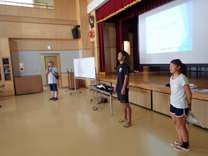まずは海に行く前に公民館で海や海の生き物やサンゴについてお勉強!総勢50人もの子ども達が興味津々に聞いてくれました^^