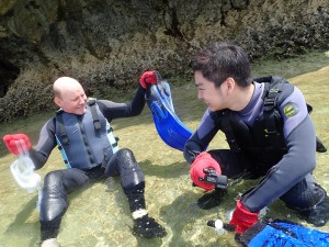 真栄田岬近くのビーチでみなさまをご案内させていただきました。